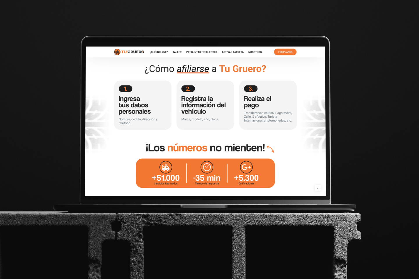 Tu Gruero es una empresa venezolana que ofrece suscripciones anuales ilimitadas a grúas, asistencia en carretera y servicios mecánicos generales.